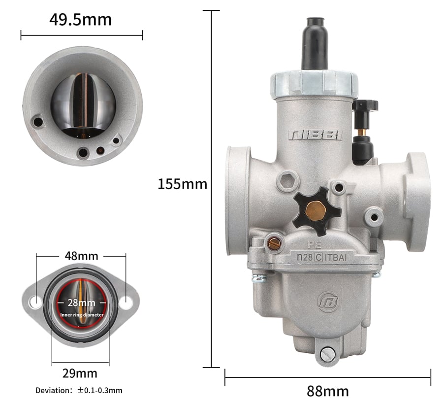 Combined with the NibbiRacing carburetor atomization technology, NibbiRacing creates a sensitive choke valve and improves performance. To achieve the best results, we also recommend buying the NIBBI RACING air filter. Accessible idle and mixture settings. The package includes a set of jets