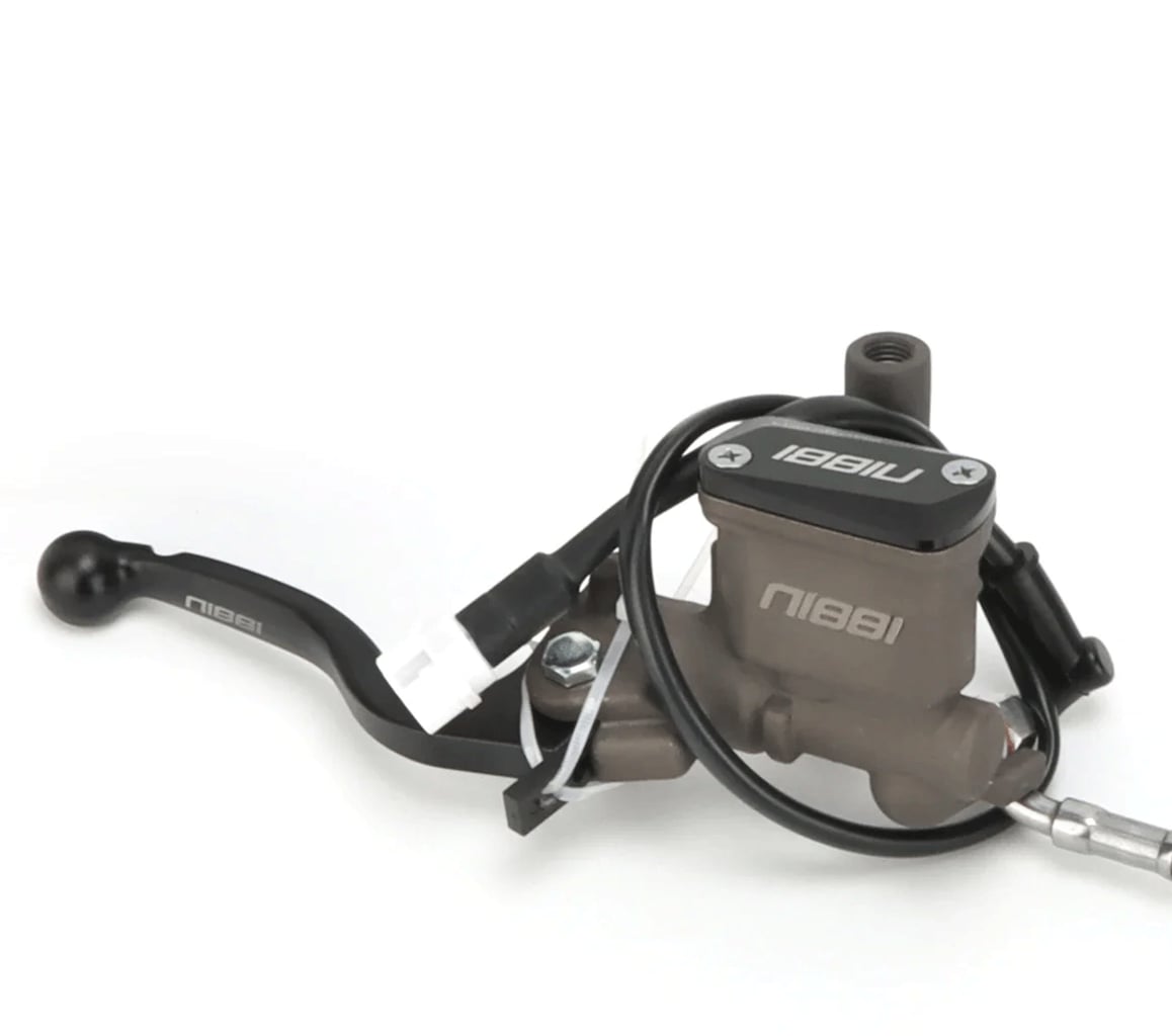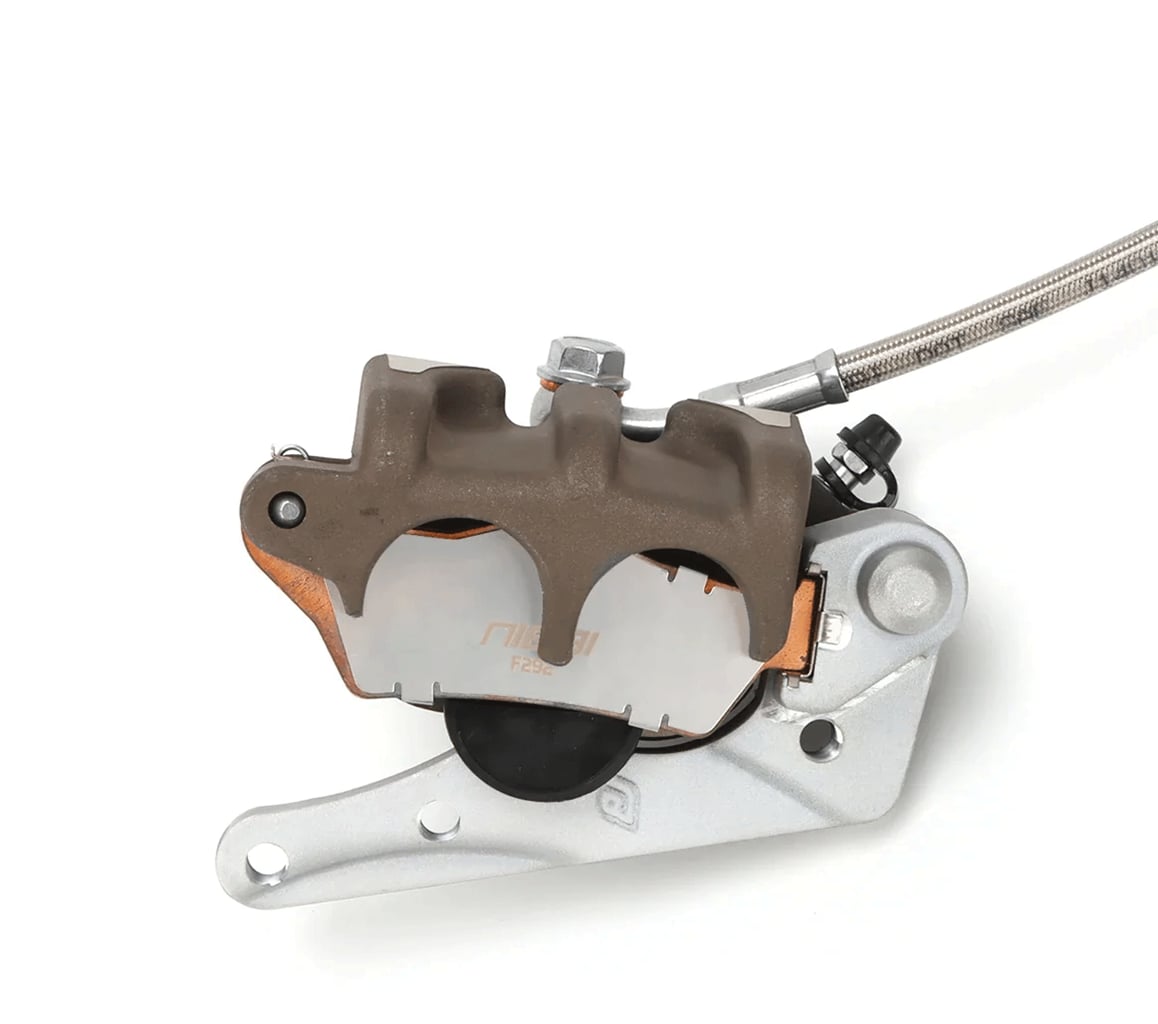 The brake assembly is made of CNC aluminium main cylinder, stainless steel braided hoses and wear resistant plates - resistant to heat, mud and vibrations for long-lasting performance.