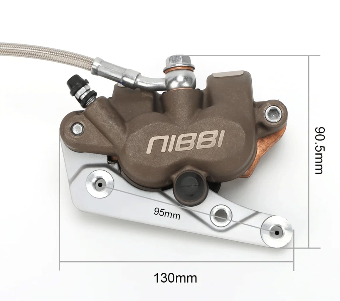 Complete two-piston brake for pit bike with adjustable tilting lever Hose length: approx. 1300 mm Stretch spacing: 103 mm