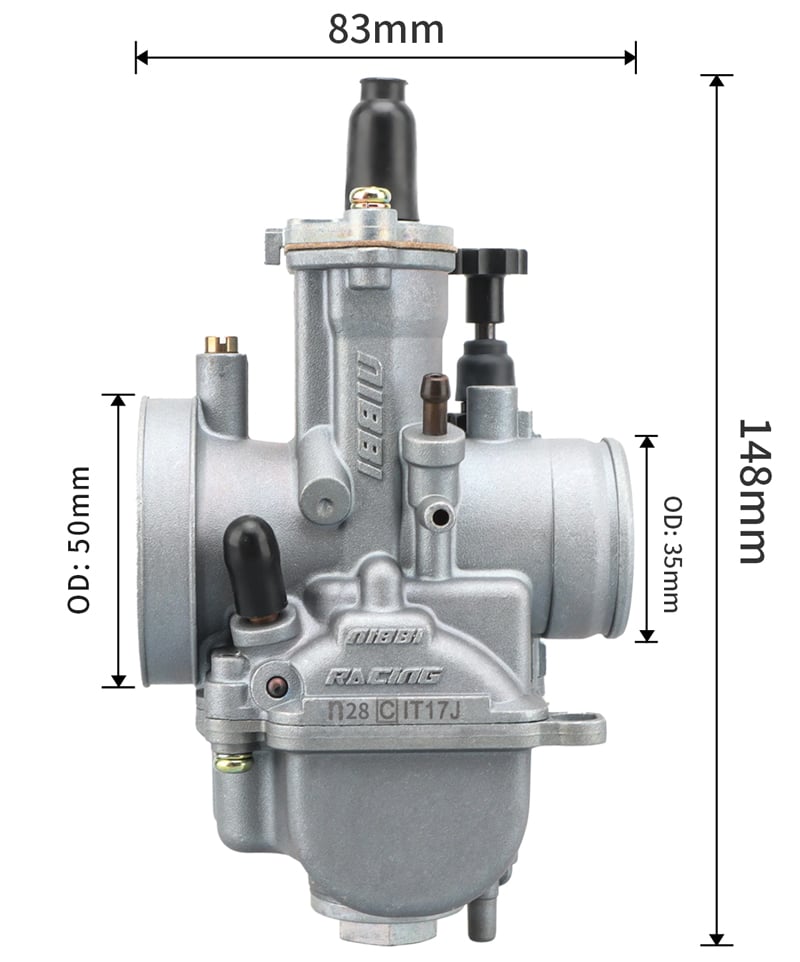 is most commonly used for 2T and 4T engines 200ccc-250cc quadricycles, motorcycles and go-kars. Thanks to the excellent technology, the NIBBI RACING carburettors are perfectly tuned for better performance (5-10% more than normal carburettor) and have faster gas response. Nibbi Racing PWK carburetors are the perfect solution to improve vehicle performance. Aluminium alloy with anodic oxidation treatment which significantly improves corrosion resistance, wear resistance, insulation, thermal resistance and hardness of the carburetor. To achieve the best results, we also recommend buying the NIBBI RACING air filter. Accessible idle and mixture settings. The carburetor requires a rubber flange.