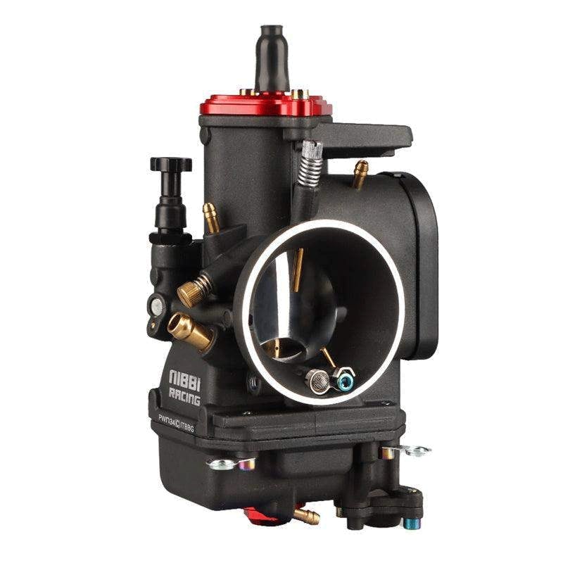 is most commonly used for 2T engines 100-125cc quadricycles, motorcycles and go-kart. Thanks to excellent technology, the NIBBI RACING carburetors are perfectly tuned for better performance and have faster gas response. Nibbi Racing PWN carburetors are the perfect solution to improve vehicle performance. Aluminium alloy with anodic oxidation treatment which significantly improves corrosion resistance, wear resistance, insulation, thermal resistance and hardness of the carburetor. Setting of idling and air and fuel mixtures to achieve optimum power, gas response and fuel consumption. To achieve the best results, we also recommend buying the NIBBI RACING air filter. Accessible idle and mixture settings. The carburetor requires a rubber flange. The package includes a set of jets