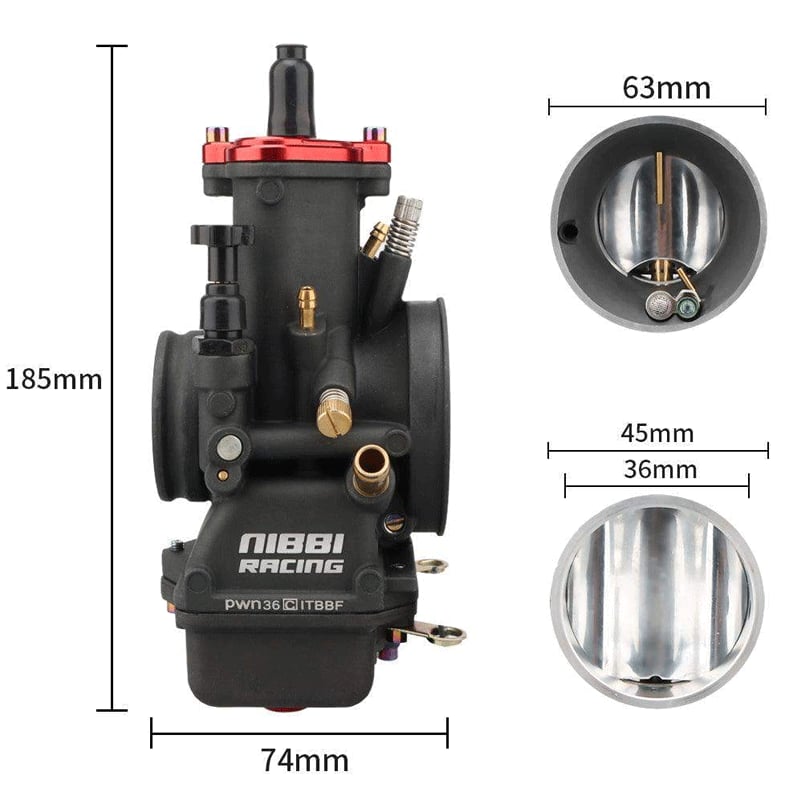 is most commonly used for 2T engines 150cc quadricycles, motorcycles and go-kars. Thanks to excellent technology, the NIBBI RACING carburetors are perfectly tuned for better performance and have faster gas response. Nibbi Racing PWN carburetors are the perfect solution to improve vehicle performance. Aluminium alloy with anodic oxidation treatment which significantly improves corrosion resistance, wear resistance, insulation, thermal resistance and hardness of the carburetor. Setting of idling and air and fuel mixtures to achieve optimum power, gas response and fuel consumption. To achieve the best results, we also recommend buying the NIBBI RACING air filter. Accessible idle and mixture settings. The carburetor requires a rubber flange. The package includes a set of jets